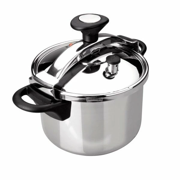 En acier inoxydable 18/10 de haute qualité et avec son fond thermique renforcé, permet une montée en température rapide et une économie d’énergie. En effet, l’économie d’énergie peut aller jusqu’à 60% sur des plats de longue durée de cuisson, et entre 30% et 40% pour des plats de courte durée de cuisson. Il passe sur tous les feux, dont l’induction. La graduation intérieure indique différents niveaux ainsi que le minimum et le maximum, en litres. Sa capacité est de 8 L. L’autocuiseur ne comprend pas de panier vapeur.