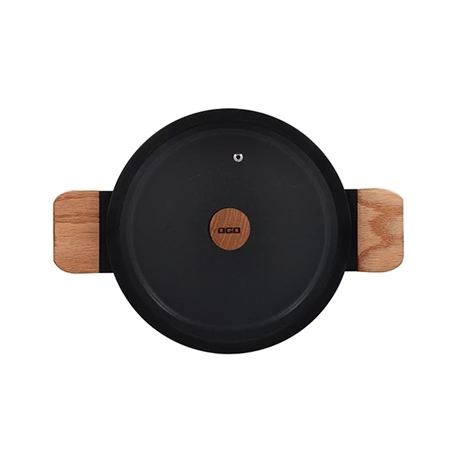 La marque Ogo a fait le choix d’un manche en bois brut naturel pour son manche. Placé suffisamment haut sur le bord de l’ustensile, il est parfaitement isolant de la chaleur et vous évite d’éventuelles brulures.