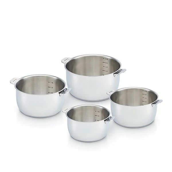 Le set de 4 casseroles Select fait partie de la nouvelle gamme de cuisson de Beka en acier inoxydable. Le set est composé de 4 casseroles de 14, 16, 18 et 20 cm de diamètre. Les casseroles possèdent un marquage intérieur des capacités pour une lecture simple et pratique des quantités. Très solide, l’acier a une durée de vie presqu’illimitée.
