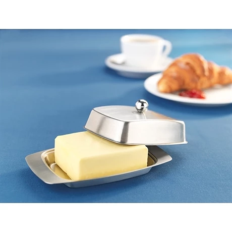 Conservez votre beurre à bonne température grâce au beurrier en acier inoxydable Maximex : fabriqué en inox, un matériau qui résiste à l’usure, aux chocs et à la rouille, ce beurrier isolera parfaitement votre beurre pour éviter qu’il ne refroidisse trop dans votre frigo et devienne dur. De même, il conserve sa fraîcheur lorsqu’il est servi, évitant la fonte lors du petit-déjeuner. Pas d’odeurs, pas de goût, gardez toutes les saveurs de votre beurre tout en préservant sa texture.