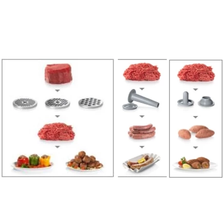 D’une grande multifonctionnalité, les multiples accessoires du hachoir à viande vous permettront de varier les plaisirs !