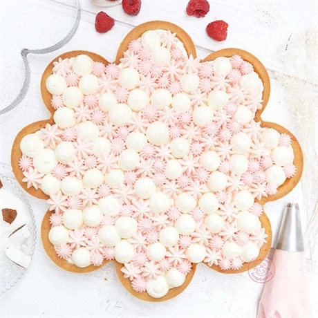 Les bords de ce cercle en forme de fleur est perforé pour une cuisson totalement homogène, et il est fait pour un démoulage net et facile. Régalez vos invités avec un dessert créatif grâce à ce cercle à tarte Marguerite Scrapcooking tout en prenant soin de vous grâce à l’inox, matériau sain et durable. En bonus, une recette de tarte framboise-coco est incluse avec ce cercle.