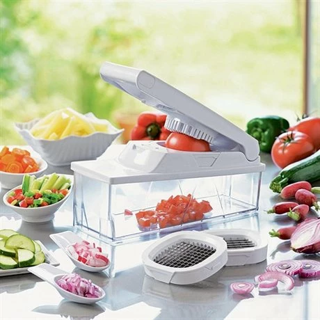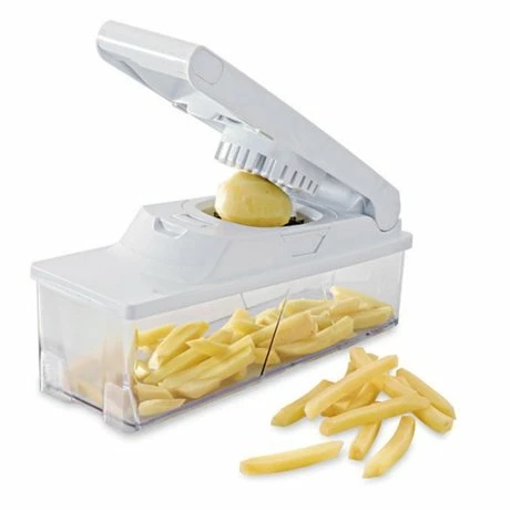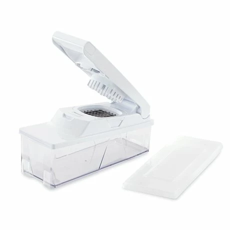 Grâce à ce coupe légumes muni de trois grilles interchangeables, découpez vos fruits et légumes et frites simplement et en toute sécurité. Une pression suffit pour que les aliments tombent coupés dans le bac, sans salir votre plan de travail. L’ustensile est entièrement démontable et supporte le passage au lave-vaisselle. Son couvercle permet la conservation des végétaux tranchés au réfrigérateur. Caractéristiques techniques : lames inox.