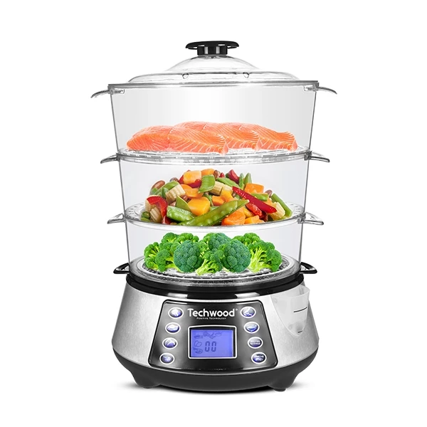 Doté de la fonction maintien au chaud et de 3 paniers (4,5 L/ 4L / 3L) pour cuire vos aliments, vous pourrez réaliser aisément un repas complet à la vapeur et garder tout le croquant de vos légumes. Simple d’utilisation : toutes les informations seront affichées sur le petit écran LCD rétroéclairé.