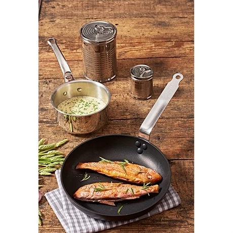 En aluminium forgé et avec sa queue rivetée en inox, cette poêle saura résister aux multiples utilisations.