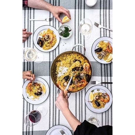 Conçue pour réaliser de délicieuses paëllas pour 4 personnes, la Poêle à Paëlla 32 cm est issue de cette gamme, et est dotée de 2 anses en inox.