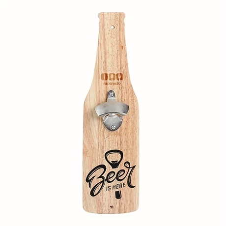 Original, en forme de bouteille, il est fabriqué en bois d’hévéa et apporte une véritable touche décorative dans la cuisine ou sur la terrasse. Accroché près du réfrigérateur, il permet d’ouvrir sa boisson directement sans devoir chercher un ouvre-bouteille dans les tiroirs. Résistant, il est efficace et vraiment très pratique.