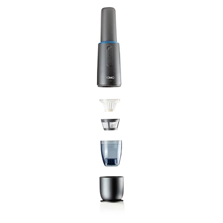 L’aspirateur à main est alimenté par une batterie Li-ion de 7,2 V autorisant son utilisation pendant environ 12 minutes. Sans fil, il dispose d’un connecteur USB à l’arrière de l’appareil et se recharge posé sur sa base en 90 minutes à l’aide de son câble de charge et de son adaptateur inclus. Un témoin lumineux indique le niveau de la batterie et commence à clignoter lorsque celle-ci est presque déchargée. Equipé d’un filtre HEPA H10, son système de filtration garantit une qualité de filtration élevée mais aussi une grande efficacité ; il vous débarrasse des résidus, particules et allergènes déplaisants voire nocifs pour la santé. Un accessoire 2 en 1 complète l’aspirateur avec un côté embout suceur pour les recoins et un côté brosse à poussière pour les tissus par exemple.