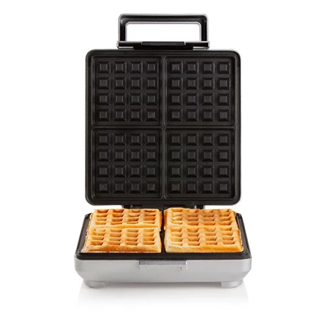 Ce gaufrier de 1600 W vous permet de cuire 4 gaufres belges carrées à la fois. Les plaques sont équipées d’un revêtement antiadhésif de haute qualité pour vous simplifier la vie. Lorsque vos gaufres sont cuites, vous pouvez les sortir du gaufrier sans difficulté. A noter, il ne faut pas utiliser d’ustensiles métalliques pour ne pas abimer le revêtement, privilégiez des objets en bois ou en plastique résistants à la chaleur.