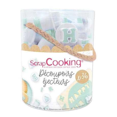 Créez des mots ou des nombres grâce aux 26 lettres de l’alphabet et aux 10 chiffres qui composent ce seau d’emporte-pièces lettres et chiffres Scrapcooking. Biscuits, pâte à sucre, d’amande ou sablés, façonnez vos créations pour décorer vos gâteaux avec le nom et l’âge lors d’un anniversaire ou un Joyeux Noël imprimé sur vos bûches glacées.