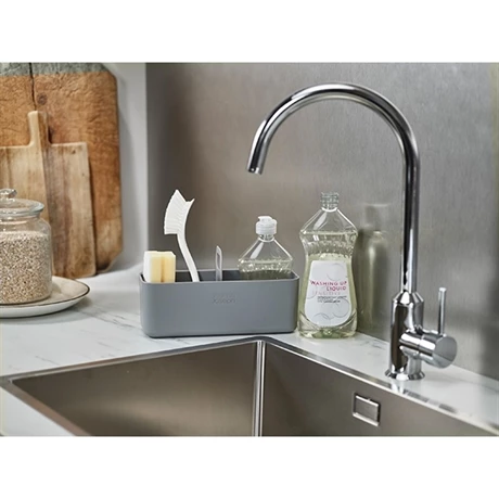 Idéal pour toujours garder une cuisine bien rangée, le chariot à vaisselle intégré pour placard DoorStore Joseph Joseph est à la fois design et Ingénieux. Il se compose d’un support fixé dans la porte du placard, muni d’un rail de suspension pour les chiffons et torchons à vaisselle, et d’un bac amovible qui reçoit les éponges et produits lavants. Pratique, ce bac permet de transporter les produits pour faire la vaisselle du support de fixation à l’évier.