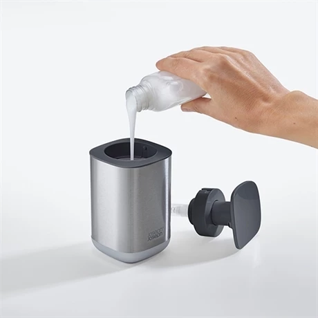 Sa conception compacte et ses finitions en acier inoxydable en font un objet aussi beau qu’indispensable à placer à côté de la vasque. Muni d’une grande pompe à pression facile, ce distributeur hygiénique s’utilise avec la paume de la main, pour le garder propre.