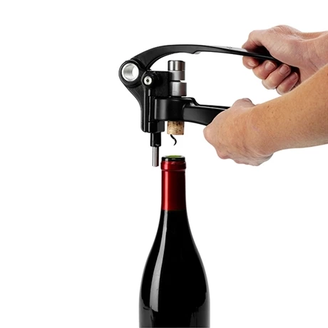 – Tout en maintenant les poignées fermées, remonter lentement le levier : la bouteille est débouchée.
