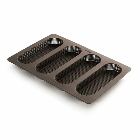 La Plaque souple 4 mini baguettes perforée permet de réaliser différentes recettes de pains à la mie moelleuse et à la croûte croustillante. Grâce aux perforations dont elle est munie, l’air circule pendant la cuisson et la pâte reste sèche, pour un résultat optimal.