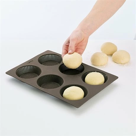 La plaque souple 6 petits pains ronds perforée permet de réaliser différentes recettes de pains à la mie moelleuse et à la croûte croustillante. Grâce aux perforations dont elle est munie, l’air circule pendant la cuisson et la pâte reste sèche, pour un résultat optimal.