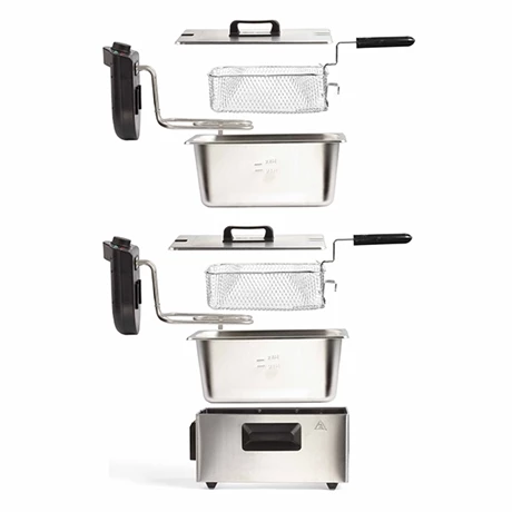 Découvrez la friteuse double au corps en acier inoxydable chromé et préparez de délicieuses frites pour toute la famille en une seule fois ! Sa large capacité de 2 x 3 L est idéale puisqu’elle vous permettra de cuisiner jusqu’à 1,6 kg de frites. Entièrement démontable cette friteuse est pour autant facile d’entretien et de nettoyage. Indépendants, chacun des deux paniers possèdent leurs propres thermostats réglables jusqu’à 190°C. Résistante, les cuves dispose d’un revêtement émaillé.