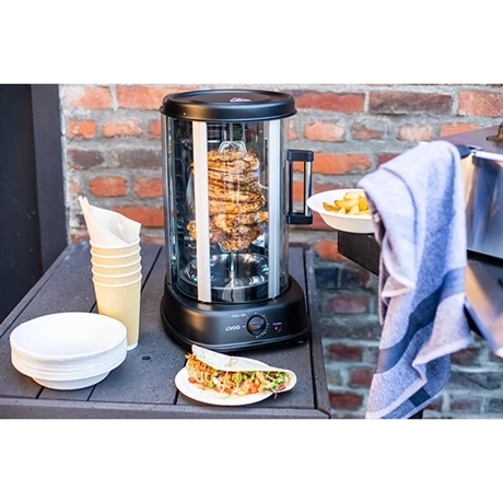 Ce grill rôtissoire vertical Livoo vous permet de faire facilement des poulets rôtis ou des kebabs savoureux à la maison. D’une puissance de 1500 W, cette rôtissoire cuit vos viandes à 200°C (+ ou – 20°C) et est dotée d’un minuteur réglable.