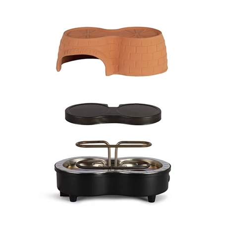 Cuisez simultanément 2 mini pizzas de 11 cm de diamètre avec le Pizza party duo. Afin de vous offrir une cuisson traditionnelle, le four est conçu avec un dôme en terre cuite. Cuisez vos pizzas en 5 à 7 minutes. Le pizza party possède un plateau en revêtement antiadhésif.