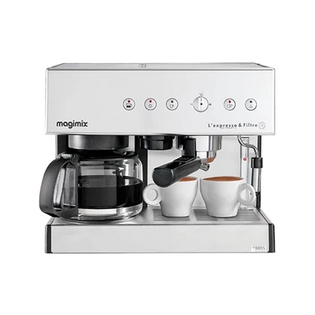 La cafetière Expresso automatique chrome mat est un indispensable pour tous les amateurs de café de par son design à la fois moderne et professionnel et ses performances. La cafetière possède 2 filtres, pour du café moulu ou dosettes. La pompe exerce une pression de 19 bars pour un café parfait ! Le réservoir de 1,8 L est amovible avec le niveau d’eau visible. Il est doté d’un filtre à eau avec cartouche Maxtra pour une eau plus pure, un débit rapide et un café au goût optimal !