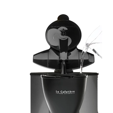 Programmez vos cafés du lendemain avec la cafetière thermo automatique. Pratique, elle se programme 24 heures à l’avance pour une mise en route automatique. Sa verseuse est isotherme pour vous servir un café chaud pendant des heures grâce à sa double paroi en inox incassable.