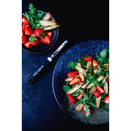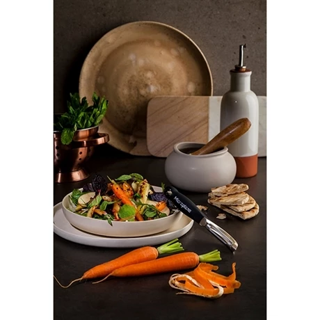 Epluchez les légumes les plus durs avec facilité en utilisant cet économe à lame pivotante Microplane : l’enseigne, réputée pour la performance de ses ustensiles de découpe, a équipé cet économe d’une lame en inox ultra-affûtée coupant dans les deux sens et pivotant à 30° pour suivre la forme des fruits et légumes. Pour accompagner le tranchant de sa double lame, l’économe a été légèrement alourdi et nécessite donc une pression moindre pour entrer dans la peau des aliments. Concombres, carottes, poires ou même butternuts, épluchez-les sans suer grâce à l’efficacité de cet outil professionnel. Petit plus, l’extrémité de l’épluche légume Microplane a été incurvée afin de retirer les yeux de pommes de terre ou les parties abîmées.