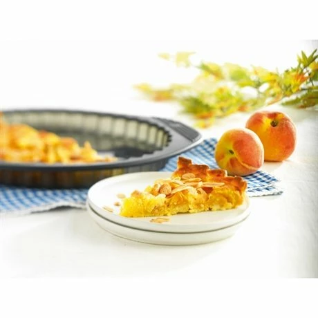 Le Moule à tarte silicone diamètre 28 cm fait partie de la gamme de moules Mastrad Silicone, qui allie respect des traditions et technologies innovantes pour faciliter la cuisine du quotidien. Ces moules sont incassables, en 100% silicone Premium très résistante. Anti-adhérents et ultra-résistants (de -40°C à +220°C), ils sont munis de poignées rigides pour une manipulation aisée. Leur coloris gris translucide permet de contrôler plus facilement la cuisson. Ils assurent un démoulage parfait et se nettoient au lave-vaisselle.