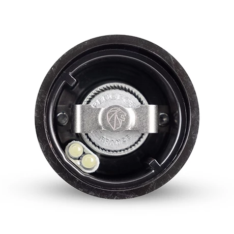 Petite merveille technologique, ce coffret moulin à poivre électrique Elis Sense de Peugeot se déclenche d’une simple touche tactile simultanée sur le corps et le bouton. L’éclairage LED du moulin permet ensuite de contrôler avec précision le dosage obtenu sur mesure grâce au système de réglage de mouture U’Select. Ce système est composé de 6 moutures différentes pour le poivre (et 3 pour le sel). Grâce à la fiole garnie à usage d’entonnoir doseur et à la coupelle qui l’accompagnent, le remplissage et le service sont impeccables. Il est en inox et polycarbonate. Il fonctionne avec 6 piles AAA fournies.
