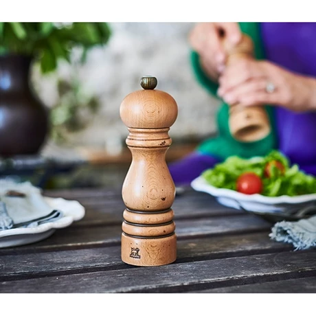 La collection Antique propose les moulins emblématiques et historiques de Peugeot avec une finition antiquaire : logo marqué au fer à chaud et bois issu de fôrets françaises, vieilli et patiné à la main. Cette collection met donc en valeur le charme et la patine du temps, mais s’inscrit également parfaitement dans des univers très contemporains.