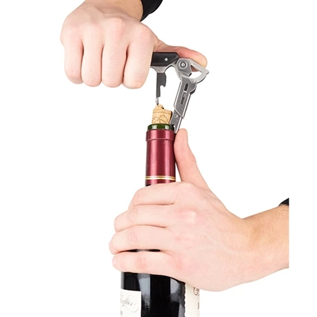Son système astucieux de poignée avec appui permet d’ouvrir une bouteille en un seul mouvement, contrairement aux tire-bouchons sommeliers classiques qui nécessitent de se repositionner et d’extraire le bouchon en deux mouvements. Ici, l’extraction se fait rapidement et sans contrainte.