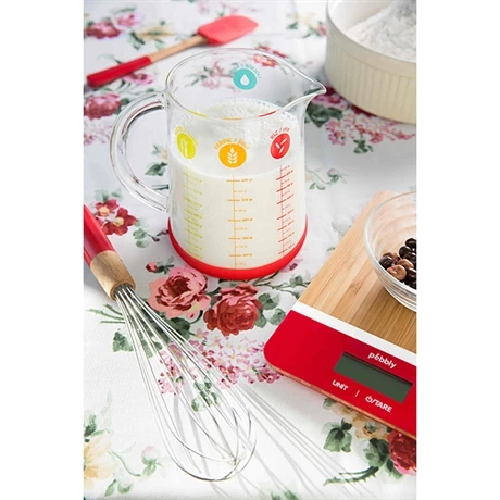 Le pichet mesureur de 1 Litre est une aide précieuse lors de la préparation de plat et gâteaux. Ce pichet mesure les liquides grâce à 4 graduations: ml, cl, dl et L pour s’adapter à toutes les recettes.
