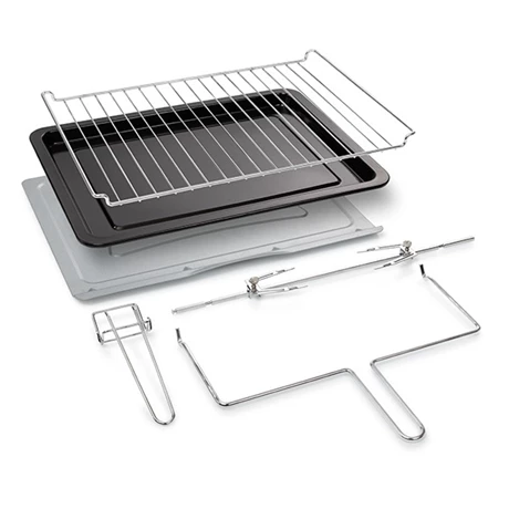 Cuisez tout type d’aliments avec le four à convection 55 L Tristar. Grâce à sa porte vitrée, surveillez la cuisson de vos préparations sans ouvrir la porte. L’entretien vous sera facilité avec les parois autonettoyantes du four. Il est fourni avec tous ses accessoires : lèchefrite, grille, plateau avec poignées et une rôtisserie pour concocter de délicieux poulets rôtis.