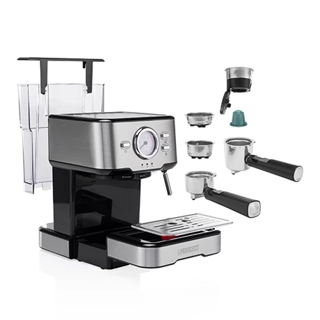 La machine à expresso 1100 W 01.249412.01.001 et à capsules est parfaite pour déguster de délicieuses tasses de café fraîchement préparées. Pratique et indispensable, la machine permet de préparer du café moulu ainsi que des capsules Nespresso. Vous pouvez préparer un ou deux expressos simultanément grâce à la pompe 20 bar. De plus, la machine a une buse à vapeur pour vous permettre de savourer de tendres cappuccinos avec nuage de lait, des latte ou encore des expresso macchiato.