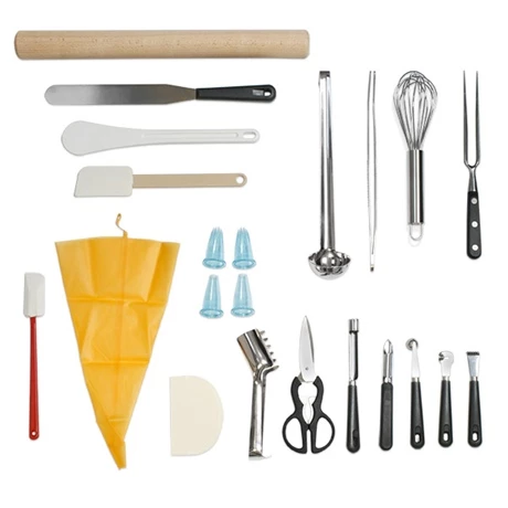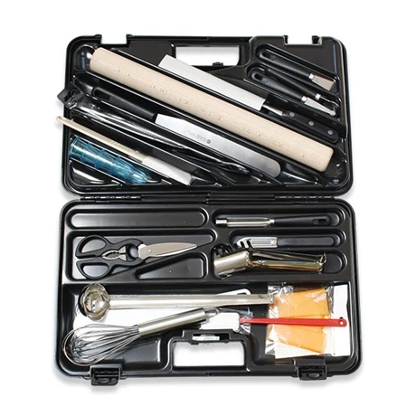 La mallette de 20 ustensiles de préparation avec fermeture à code regroupe tous les ustensiles dont vous aurez besoin fréquemment en cuisine.