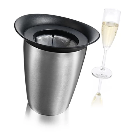 Le rebord noir supérieur permet de glisser ou de retirer le refroidisseur facilement. Celui-ci se compose d’une double paroi isolante avec 6 compartiments remplis de gel cryogénique, qui a la capacité d’absorber le froid facilement lorsqu’il est placé dans le congélateur. Efficace et élégant, ce Seau refroidisseur à champagne en acier brossé est indispensable en intérieur lors de réceptions ou en extérieur pour les apéritifs sur la terrasse, les barbecues, les garden-party.