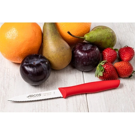 Le set contient 3 couteaux d’office rouges complémentaires : l’un a une petite lame courbée de 6 cm, le second une lame crantée de 10 cm et le dernier a une lame lisse de 10 cm. Ces couteaux de 20 cm sont fabriqués en Espagne. Arcos veille à la qualité des matériaux utilisés et trace ainsi son processus de fabrication.