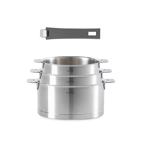 Découvrez notre set de 3 casseroles Strate avec poignée Mutine Cristel pour une batterie de qualité professionnelle avec un prix minime ! Profitez vite de cette offre comptabilisant 20 % de réduction sur le total.