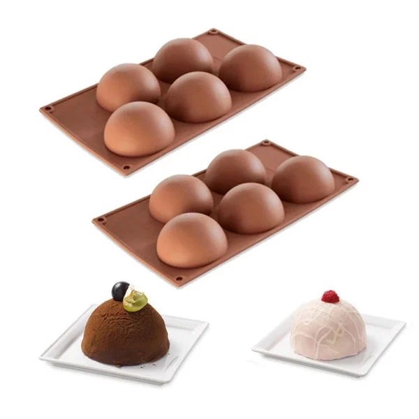 Ce lot comporte deux plaques de cinq demi-sphères chacune. Ce lot vous permet de façonner vos desserts de toutes sortes. En silicone, ce moule garantit un démoulage facile et est compatible avec une utilisation de -60° à +230°. Vous pouvez ainsi réaliser crèmes glacées, entremets, mousses et gâteaux en forme de demi-sphères nettes de 8 centimètres de diamètre.