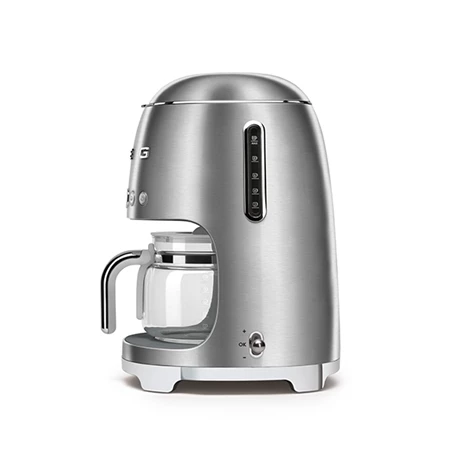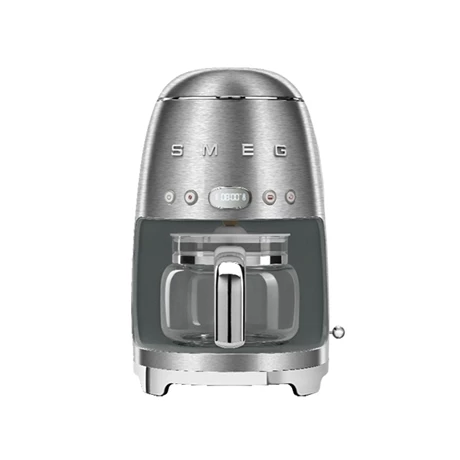 La Machine à café Filtre SMEG chrome 1050 W DCF02SSEU assure performances et design pour des dégustations de café savoureuses au quotidien. Son esthétique inspirée des années 50 révèle des formes douces et arrondies qui trouvent toute leur place dans la cuisine. Ses détails de finitions en acier brossé séduisent les amateurs de beaux objets et ses performances technologiques les fans de cafés savoureux.