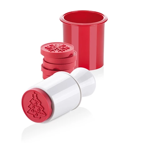 Réalisez facilement des petits biscuits ronds grâce au tampon à biscuits Noël 6 décors Délicia. Vous imprimerez simplement des motifs sur vos pâtes à biscuit, avant de les enfourner, pour le plus grand plaisir des enfants, et des grands ! Le kit comprend un tampon, six motifs interchangeables et un emporte pièce. Vous rangerez les empreintes dans le réservoir du tampon pour ne pas les perdre. Vous confectionnerez des petits biscuits d’environ 5,5 cm, à assaisonner à votre goût pour le plus grand bonheur de votre famille ou de vos amis.